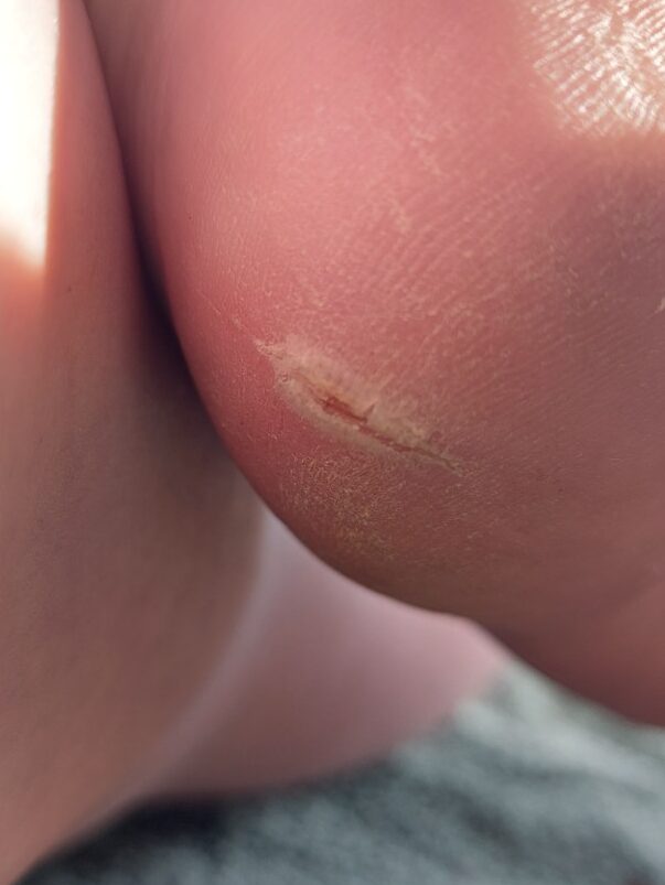- Celles qui sont plus superficielles et qui peuvent être adoucie par le retrait de la callosité et l’application d’hydratation.